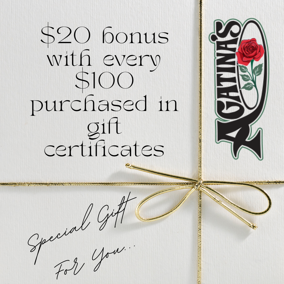 We are proud to offer our very own jarred Agatina’s sauce, which you can purchase at our restaurant or the following stores: Trianos, Gates Big M, Calabresella, Olindos, ANG Market, Food Town, Rubinos, Tops (Hilton, Buffalo Road, and Spencerport), Wegmans (Lyell, Chili, Ridgemont, Mount Read, Calkins Rd. Henrietta) You can also have our sauce shipped from Calabresella’s!